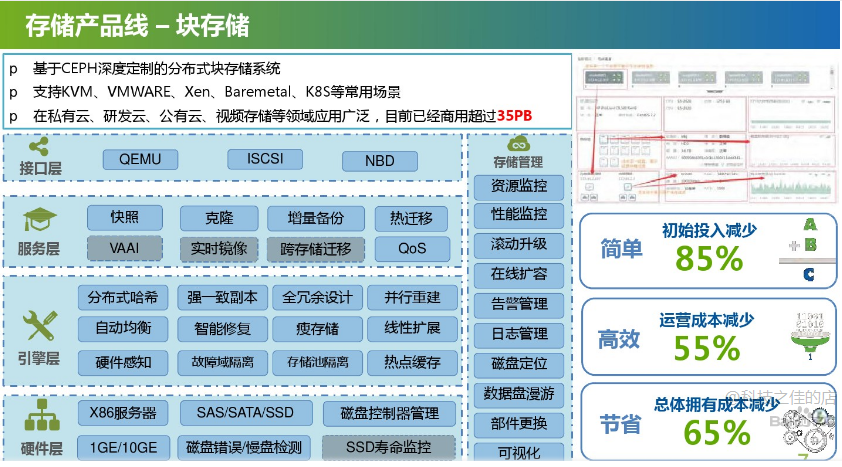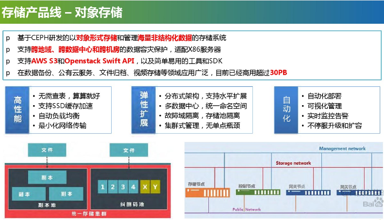云存儲(chǔ)解決方案采用業(yè)界領(lǐng)先的云存儲(chǔ)架構(gòu)思想,在系統(tǒng)架構(gòu)和設(shè)計(jì)上,充分考慮大規(guī)模集群環(huán)境下軟硬件發(fā)生故障的現(xiàn)實(shí),采用先進(jìn)的管理思想和軟件系統(tǒng),實(shí)現(xiàn)對(duì)大量普通存儲(chǔ)服務(wù)器存儲(chǔ)空間資源進(jìn)行虛擬化整合,實(shí)現(xiàn)軟硬件故障高度容錯(cuò),搭建高度穩(wěn)定可靠的存儲(chǔ)集群。