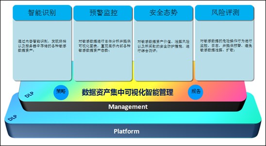 在DLP平臺上同時構(gòu)建起敏感內(nèi)容識別、預(yù)警監(jiān)控、安全態(tài)勢、風(fēng)險評測——縱深式動態(tài)防御體系。DLP數(shù)據(jù)泄露防護(hù),更加注重智能化、更加注重安全管理。