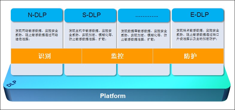 DLP安全平臺采用開放式體系架構(gòu)、模塊化設(shè)計(jì),簡化了所有規(guī)模組織的風(fēng)險與合規(guī)性管理,提升管理效率。N-DLP、S-DLP、E-DLP等均可在一個DLP安全平臺上;