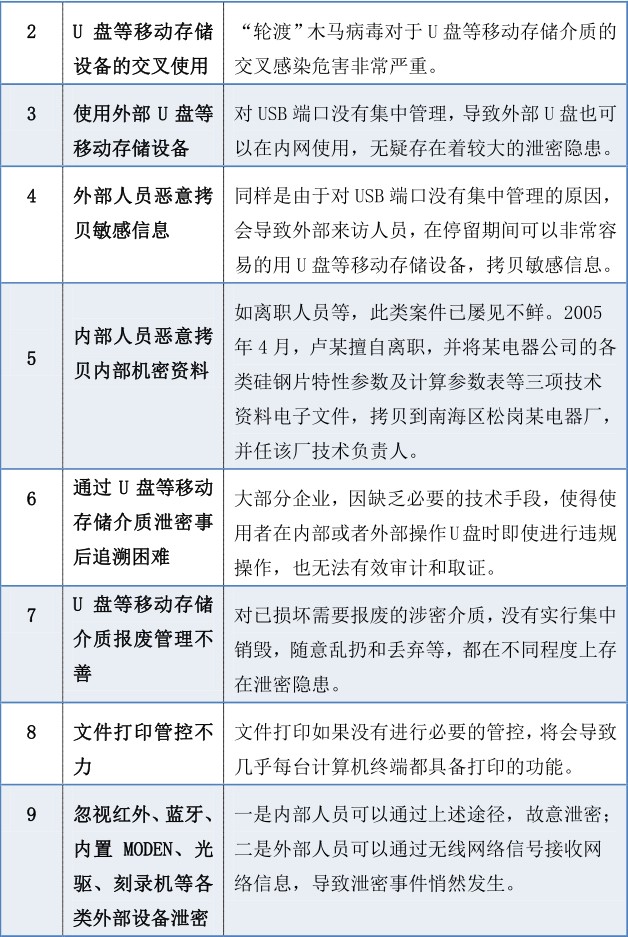 表1、U盤等移動存儲設(shè)備以及打印機(jī)等外部設(shè)備風(fēng)險