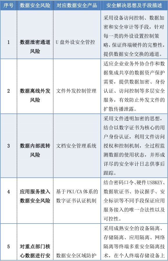 表5、數(shù)據(jù)安全風(fēng)險、安全產(chǎn)品、安全解決思想對應(yīng)關(guān)系